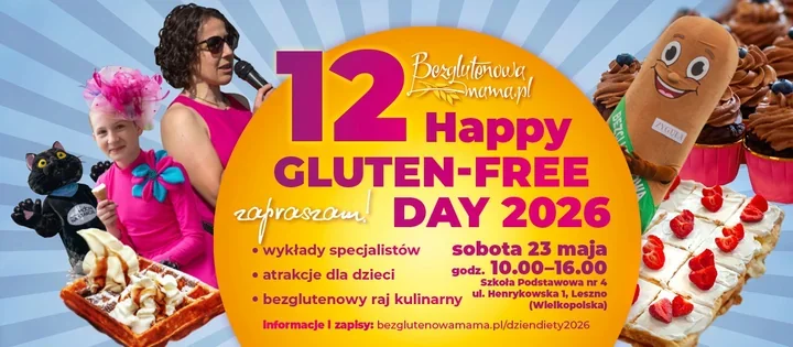 Wydarzenie potrwa od godz. 10:00 do 16:00 i po raz dwunasty wróci do Leszna pod nazwą Happy Gluten Free Day. W jednym miejscu pojawi się ponad 40 wystawców z Polski i zagranicy, a to oznacza spory przekrój produktów i smaków, których zwykle nie ma na co dzień pod ręką. Organizatorzy zapowiadają także strefę gastronomiczną z pizzą, pierogami, goframi i lodami w wersji bezglutenowej.